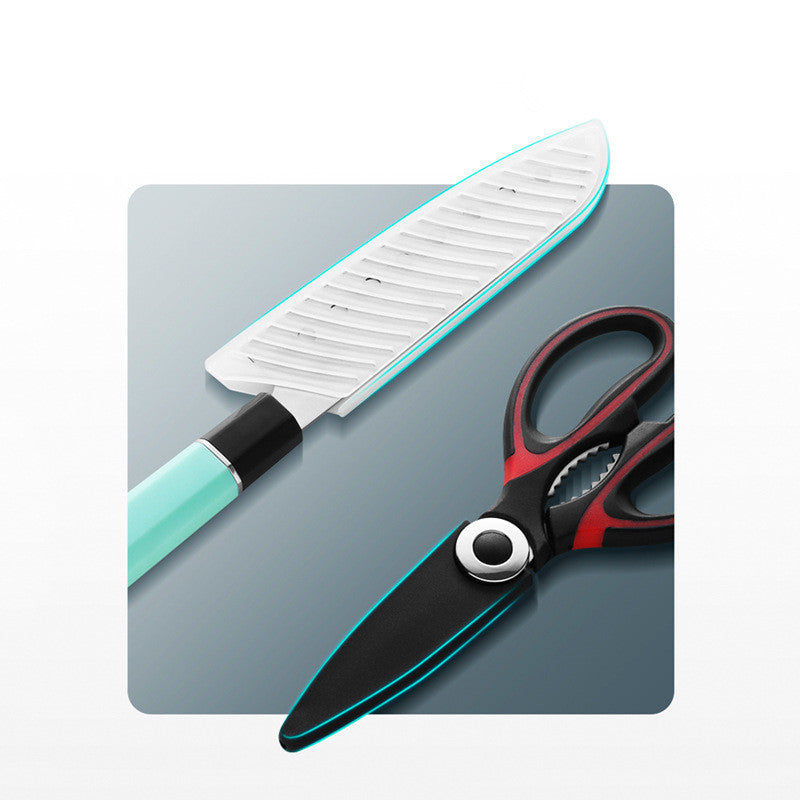 Material: Stainless steel Color classification: 7-piece cookware set (Navy Blue) 7-piece cookware set (Gray) Storage bag specifications: 36.5*21.5cm Included kitchenware: spatula / pot spoon / clip / scissors / kitchen knife / cutting board / rice spoon