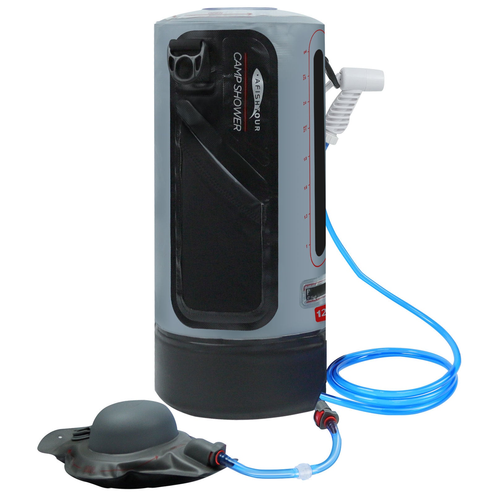 Style: FW2085 Product category: outdoor wash bag Name: 12L PVC shower bag Material: PVC Size: height 43cm, diameter 17cm Capacity: 12 liters Color: grey