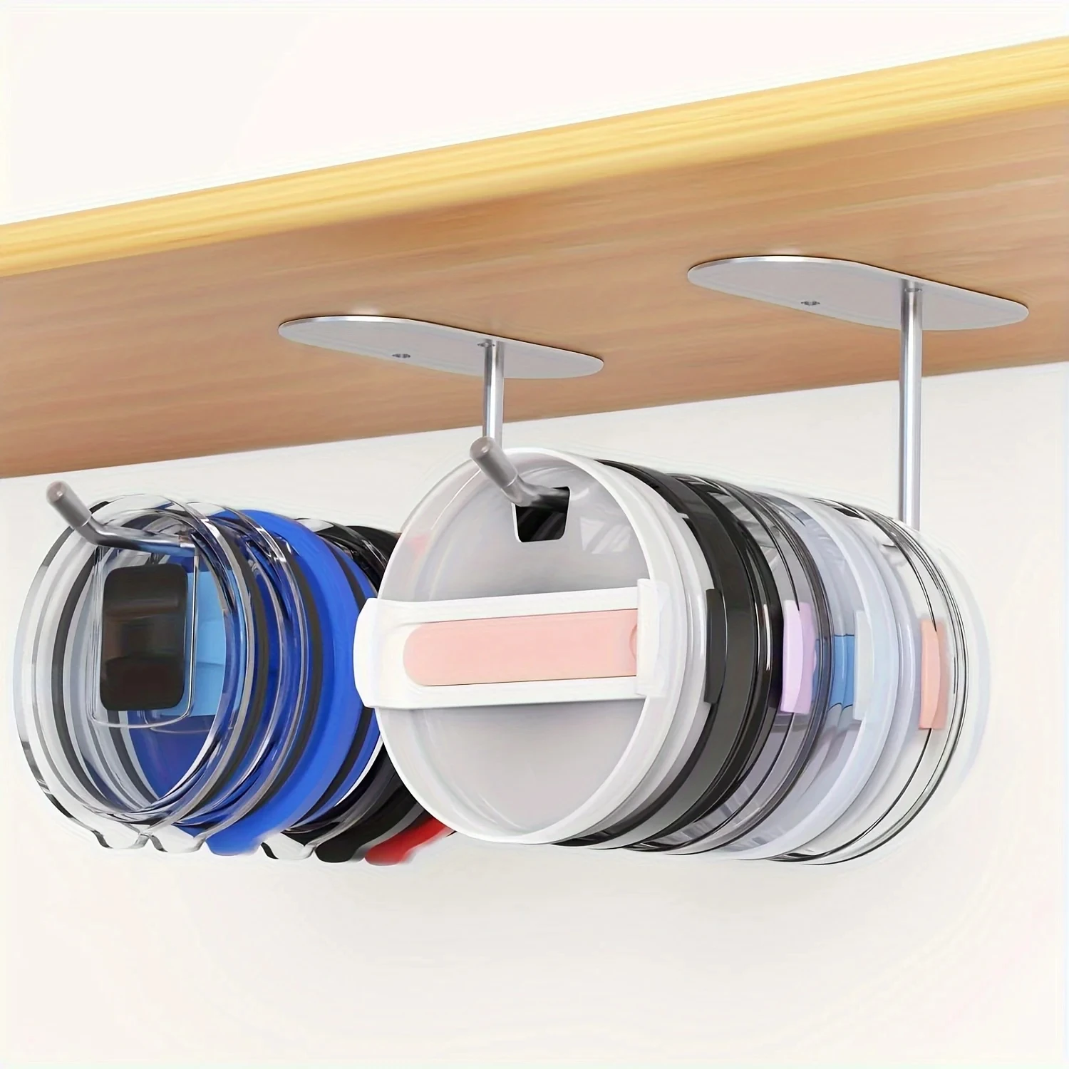Tumbler Lid Organizer Under Cabinet Tumbler Lid Holder Hook for Kitchen Organizers and Storage Space Saving Cup Lid Organizer